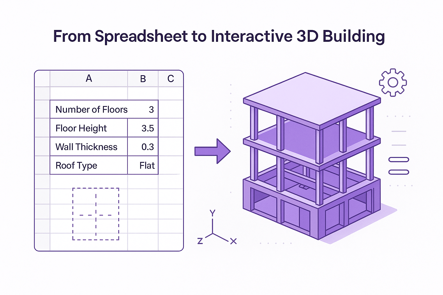 Excel-Based Workflow: Define key parameters like floor height, number of levels, wall thickness, and roof type directly in your spreadsheet.